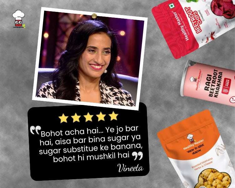 Some of the most popular and healthy snacks to buy from Healthy Master include roasted fox nuts (makhana), baked bhakarwadi, millet cookies, and sugar-free energy bars. All snacks are nutritionist-approved and full of natural goodness.