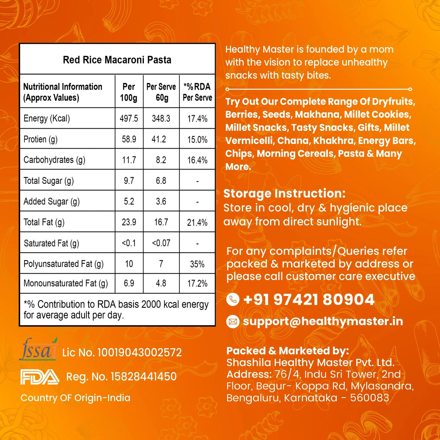 Introducing our Red Rice Macaroni Pasta, a nutritious twist on the classic macaroni! Crafted with a unique blend of Red Rice Flour, Whole Wheat Flour, Besan gram flour, and a dash of Cluster bean powder, our pasta offers a distinctive nutty flavor in the beloved macaroni shape. To enhance the taste, we've added a pinch of iodized salt. Enjoy a healthier pasta option that combines the goodness of Red Rice with the comfort of macaroni. Savor the wholesome flavor in every bite! Buy Delicious Healthy Snacks